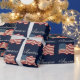 Waving, rustic American Flags decorate this stylish wrapping paper. The design is from original art.