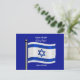 The waving flag of Israel with the Israel written in English, Hebrew and Arabic.