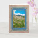 Scrapbook-look photo greeting card featuring colourful waving grasses in a meadow with mountains and vibrant blue sky in background. This card can be personlized with you own text by clicking the "Customise it" button, or left blank. Original photography.