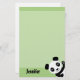 A set of stationary featuring a simple digital illustration of a waving black and white panda bear, sitting happily on a pale green background. You can customise the name at the bottom to really personalise it.