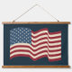 The polyester fabric displayed many wrinkles and several sharp creases throughout. At the bottom of the tapestry, I noticed a bulge in the fabric because it was not pulled tight enough before being connected to the wooden boards. It took me over an hour to spay water on the tapestry before putting it on an ironing board where I used a warm iron over a polyester cloth to remove the wrinkles and creases in the material. I was able to get out the wrinkles and creases that made that tapestry look as beautiful as its picture.