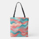 Wavy abstract pattern with vibrant shades of coral, peach, and turquoise tote bag