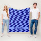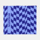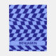 Personalised fleece blanket with wavy distorted chequered pattern and custom name in navy blue and light blue.