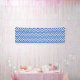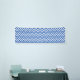 Features a beautiful pattern of blue and white waves. They are made up of curving lines, geometric forms that are entirely abstract but also inspired by the natural world. A clean and stylish design.
