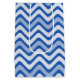 Features a beautiful pattern of blue and white waves. They are made up of curving lines, geometric forms that are entirely abstract but also inspired by the natural world. A clean and stylish design.