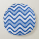 Features a beautiful pattern of blue and white waves. They are made up of curving lines, geometric forms that are entirely abstract but also inspired by the natural world. A clean and stylish design.