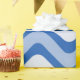 Features a beautiful pattern of blue and white waves. They are made up of curving lines, geometric forms that are entirely abstract but also inspired by the natural world. A clean and stylish design.