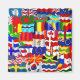 Colourful illustration of a montage of wavy flags representing countries from all over the world including uk, usa, israel, macedonia, cyprus, korea, canada, iceland, barbados and more. Image available on various gifts and products.