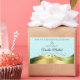 The design features a noble shimmery wavy gold decoration with soft glitter stars and a light teal background.