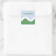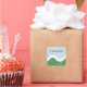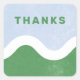 A bold envelope seal created to coordinate with the "Wavy Lines" stationery note card. The sticker says "Thanks", and features a blue and green textured background with a simple wavy line design overlay.