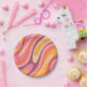 Wavy Loops Retro Abstract Pattern Pink Purple Orange Mustard. Trippy 60s 70s 80s psychedelic aesthetic. Vintage modern colours. Unique artsy cool trendy contemporary boho wavy warp groovy swirl design; bright, colourful, and with a joyful vibe. By Kierkegaard Design Studio.