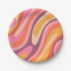 Wavy Loops Groovy Retro Abstract Pattern Paper Plate