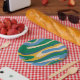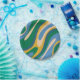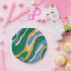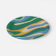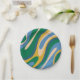 Wavy Loops Retro Abstract Pattern Blue Green Paper Plate