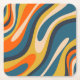 Wavy Loops Retro Abstract Pattern Blue Orange Square Paper Coaster