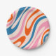 Wavy Loops Retro Modern Abstract Pattern Blue Pink Paper Plate