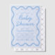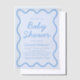 Wavy Modern Curvy Retro Boy Dusty Blue Baby Shower Vellum Invitations
