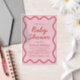 Celebrate in style with our Wavy Modern Curvy Retro Pink and Red Baby Shower Vellum Invitations! 🎀👶✨ Featuring bold pink and red wavy patterns, trendy retro typography, and a modern aesthetic, this invitation brings a fun and stylish touch to your baby shower. Printed on luxurious translucent vellum, it creates a chic layered effect, perfect for a modern, coquette, or retro-inspired celebration. 💕🎀 Fully customisable to match your event details! 💌✨