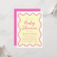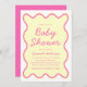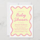 Wavy Modern Curvy Retro Pink Yellow Baby Shower Invitation