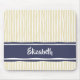 Wavy Painterly Stripes Navy and Cream With Name Mouse Pad