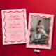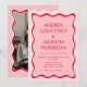Wavy Retro Photo Red and Pink Wedding Invitation