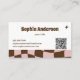 Wavy Retro Pink & Brown Chequered with QR Code Business Card