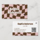 Stand out with this stylish and funky business card featuring a wavy chequerboard pattern in trendy pink and chocolate brown. The groovy 70s-inspired design, playful star accents, and bold typography make this card perfect for creatives, influencers, beauty professionals, or anyone with a bold personal brand. Includes a spot for a QR code to link directly to your website, portfolio, or socials. Customise your name, title, and contact details to make it uniquely yours.