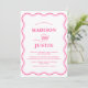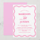This Wavy Retro Pink Wedding Invitation showcases a playful mix of hand-drawn curves and squiggles, creating a vibrant retro vibe. With its pink and red colour palette, contemporary calligraphy, and wavy design, it's the perfect blend of nostalgia and modern elegance. Ideal for couples looking for a unique and stylish invitation, this retro wedding invitation adds a fun and artistic flair to any wedding celebration.