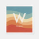Trendy personal party napkins featuring wavy stripes in retro colours. Large centred monogram and associated name. Clean, simple minimalist typography. Fully personalizable.