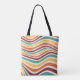 Wavy stripes, grunge Tote Bag. Retro. Abstract colourful texture in trendy groovy psychedelic style. Vintage