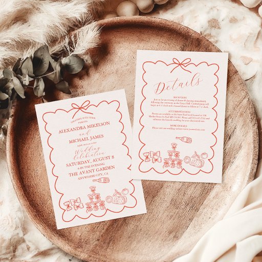 Wavy Whimsical Italian Doodle Wedding RSVP Card