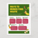 Educational poster on a postcard. Ways to reduce food waste with some tips on how to reduce food waste and help to save our resources.