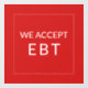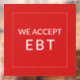 Let your customers know, that you accept EBT payments with this easy to read red and white sign. Your customers will gladly support your business in the knowledge that their cards will be accepted for payment at your business.