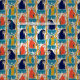 This patterned fabric is perfect for bird lovers. Illustrations of scarlet macaws, hyacinth macaws and blue and yellow macaws are interspersed with jungle vines and tropical leaves. The red, golden yellow, turquoise blue, navy blue and grey graphics are set against a soft cream or beige coloured background.