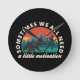 The clock did not take as long to arrive as I thought it might and was extremely well packaged. I didn't do the measurements so I didn't realize it is a little smaller than the average clock but that does not matter (just make sure you check if that's important to you).It is really nifty! It seems very solid and well made not flimsy at all. It has been going well and has kept good time in its few weeks on my wall. Nice product. Gets noticed too! Nicer in real life than the picture but true to the picture