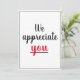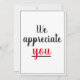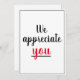 A casual "We appreciate you" card. Red and black appreciation card that you can make personal with a nice gesture from the boss, co-worker or anyone. Just use the "personalise this template" feature to edit the text to make it your own. Other paper styles available.