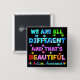 Inspirational quote of “We Are All DIFFERENT And That's BEAUTIFUL” with unique Autism puzzles, and colourful butterflies flying on the background to support and advocate Autism Awareness.