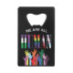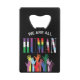 Social justice themed bottle opener features multi-colour "We are all human" text and hands representing the LGBTQ community