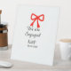 We are engaged add name letter red bow modern text pedestal sign