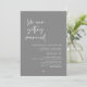 Elegantly announce your happily ever after with our modern dark grey theme wedding elopement celebration invitation card, "We are getting married". Tailored for couples continuing their love story, this invitation strikes a perfect balance of sophistication and charm, setting the scene for an unforgettable event. Featuring a modern contemporary script design, it adds a touch of timeless grace to your special day. Designed by the talented TeeshaDerrick, this invitation is a stylish expression of your enduring love.