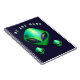 Cool fun note book with a printed image of 3/three green alien heads on a very dark blue background, with a caption/phrase which reads "WE ARE HERE"