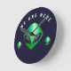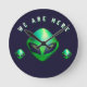 "We Are Here" Green Alien head Round Clock
