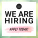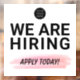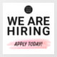 We Are Hiring Apply Today Business Window Cling with pink paint brush stroke accent design.