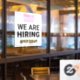 We Are Hiring Apply Today Business Window Cling with gold paint brush stroke accent and easy to add your logo template.