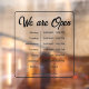 This cling is designed to help businesses make their opening hours known to potential customers. It's an easy way for customers to quickly find out what time the business is open and when they can expect to find it open.