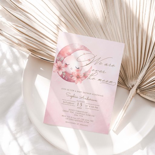 We Are Over The Moon Girl Baby Shower Thank You Card