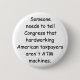 "Someone needs to tell Congress that hardworking American taxpayers aren't ATM machines." Remind Congress of that fact - call them and VOTE THE BUMS OUT.