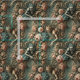 In We Beast Tonight, wild creatures stalk through a thicket of roses, chrysanthemums, and blue peonies, their snarls curling between the petals. Ornate vines twist like chains, binding beauty to menace in a seamless repeat—ideal for garments, upholstery, and drapery that demand a feral kind of elegance.