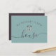 Stately teal house design, set over a cream background, features your move details in matching modern script calligraphy.