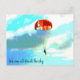 We can all touch the sky. This postcard features photo art of a parachute jumper descending below a red parachute, you can personalise it with your own words.