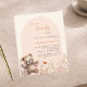 We can Bearly wait Baby Shower invitation. A cream, beige coloured background and a peach coloured arch. Decorated with watercolored wildflowers in beige, pink and a happy teddy bear.